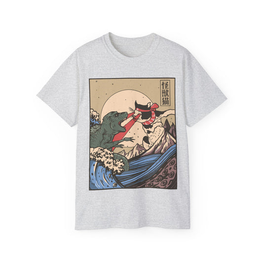 Womens Vintage Cat Vs Godzilla Tee